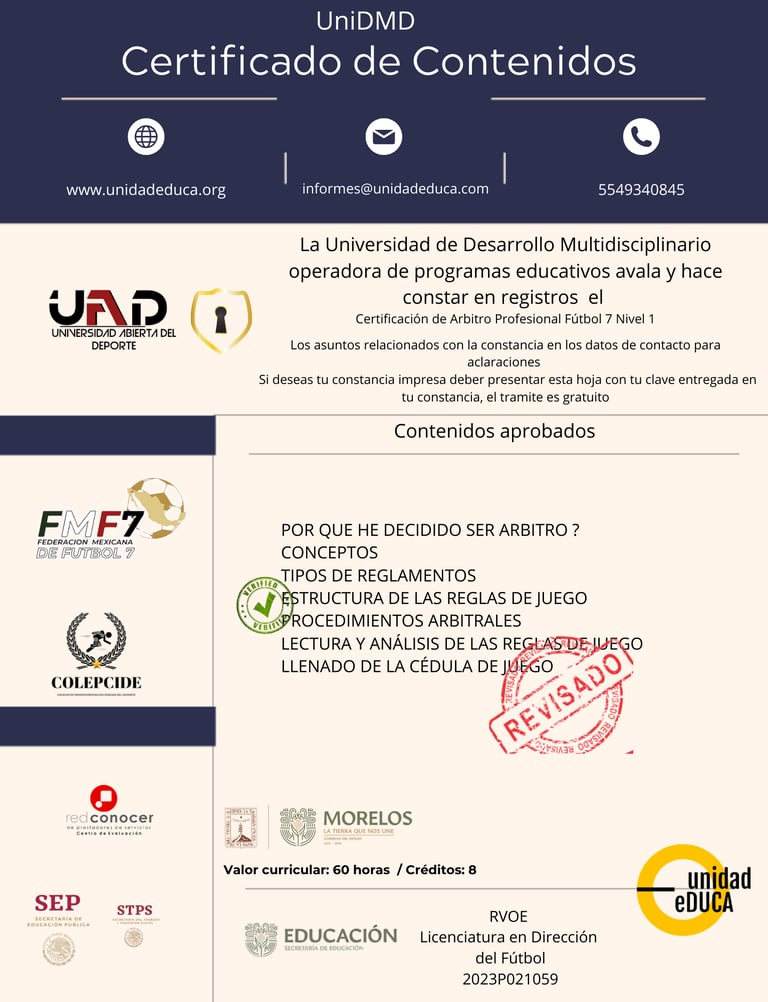 CERTIFICADO DE REGISTRO Y VALIDEZ OFICIAL